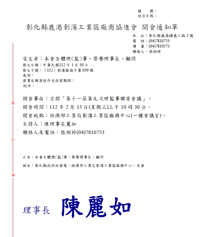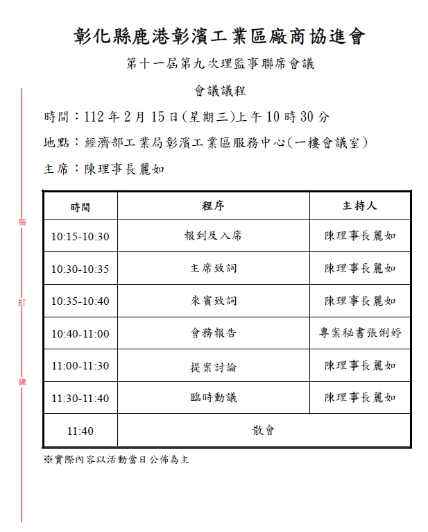 112.02.15第十一屆第九次理監事聯席會議